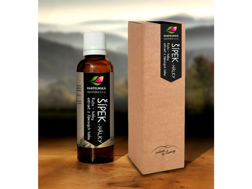Starý ukrajinský recept, co opět vynesl na svět bylinářský knihomol, spisovatel, dobrý člověk a zároveň náš zesnulý kamarád Josef A. Zentrich. Extrakt je připraven metodou perkolace šípkových hálek (to už je ovšem naše technologická úprava pro ještě vyšší extrakci účinných látek) a obsahuje zcela mimořádné množství biologicky vysoce aktivních látek - až se to člověku trochu protiví, jak svíravou chuť mají. O to více ale fungují, budete překvapení. Jedná se o naprosto ojedinělé tonikum a imunostimulátor. Hálky podporují vlastní obranné síly organismu, užívají se na jaře a na podzim a dále v začátcích infekcí (zde aplikujeme první tři dny až 9x denně 10 kapek na lžíci vody). Extrakt také velmi účinně podporuje činnost močového ústrojí. Zevně přípravek podporuje reparační schopnosti pokožky (40 kapek na 100 ml převařené vody k omývání na noc). Šípkové hálky nelze pěstovat, sbírají se pouze v přírodě, a proto se jedná o vysoce ceněný výrobek, který nám prostě každý rok dojde, než je k mání další várka.